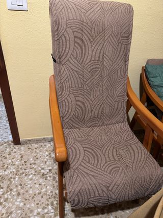 Vendo dos butacas hechas a medida. Extructura en perfecto estado, de madera en su totalidad. Cojines, con forro interior, de plumas. Tela de lino, en perfectas condiciones, excepto en los brazos como se ve en las fotografias. Con unas fundas en los brazos y una pequeña limpieza estan en perfecto estado. Son muy amplias. De alto 1,05 m. De ancho, de brazo a brazo 89 cm. Anchura del respaldo 75 cm. Entrego en Cáceres capital.