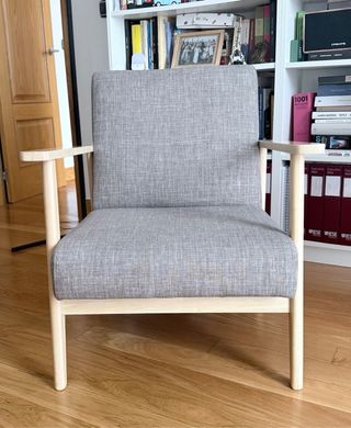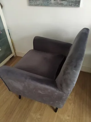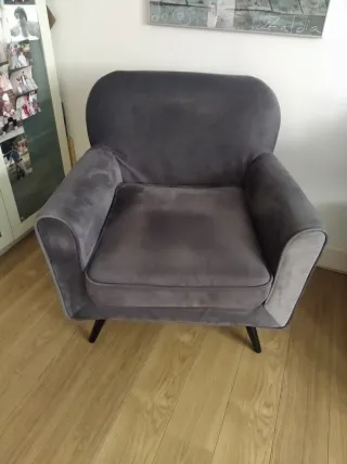 Elegante butaca con un diseño moderno y confortable. Perfecta para añadir un toque de estilo a cualquier rincón. Si te llevas los 2 las dejo en 160€ - Tapicería suave. - Patas de madera robustas.