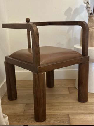 Butaca madera y cuero marrón