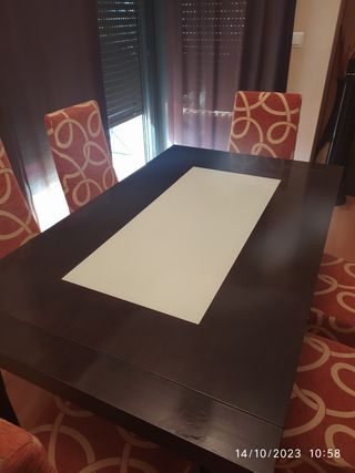 Mesa de salón extensible con 6 sillas en perfecto estado, color wengué. Las medidas están en las últimas fotos. solo recogida en persona.