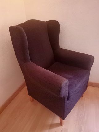sillón antiguo con su butaca ,tapizado nuevo ,se vende en conjunto o por separado ,el tapizado es el mismo en cada uno ,40 el sillón y 20 la butaca .