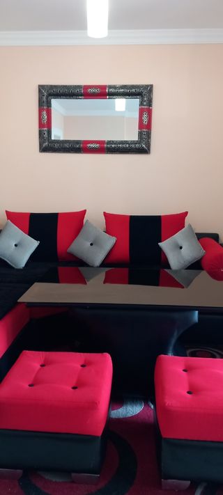 vendo salón entero con sofá y dos butacas y messa y alfombra +espejo en buen estado