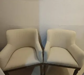 Conjunto de butacas en buen estado, ideales para crear un espacio acogedor. - Tapicería de tela. - Patas de madera. - Diseño moderno.
