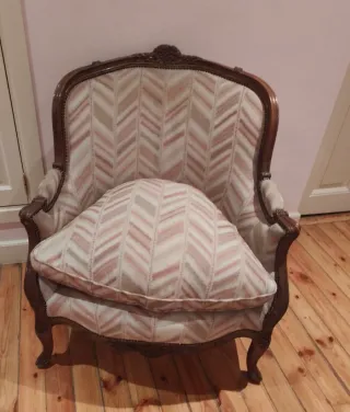 ✨ Elegancia Clásica – Pareja de Butacas Estilo Luis XV (Recién Restauradas) ✨ Vendo dos butacas exclusivas de estilo clásico con un diseño espectacular: estructura de madera tallada a mano y tapizado en tono neutro que combina con cualquier decoración. Son piezas únicas que aportan sofisticación, carácter y calidez a cualquier espacio. ✔️ Pareja de butacas (2 unidades) ✔️ Madera maciza tallada con detalles artesanales ✔️ Tapizado elegante, cómodo y en excelente estado ✔️ Ideales para salón, recibidor, rincón de lectura PRECIO POR UNIDAD