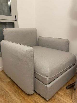 Butaca muy cómoda que se convierte en cama individual. Ha tenido un solo uso. - Tapicería de tela. - Diseño moderno.