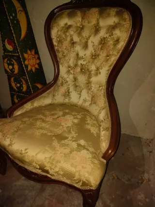 Butacas antiguas de tela y madera