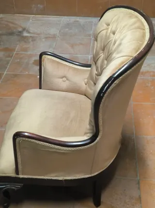 Ganga!!!!! Butaca señorial en beige. El tapizado está desgastado, pero la estructura está genial. Se puede poner funda o tapizar.
