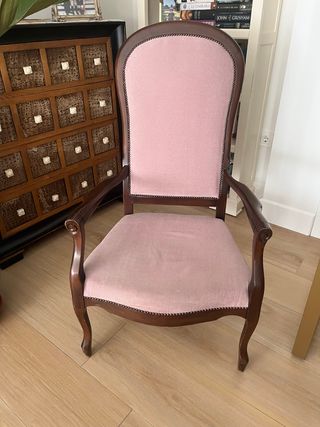 Butaca de madera tapizada rosa