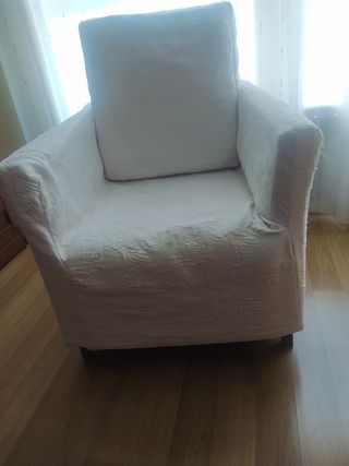 Butaca color blanco, patas nogal. Funda a medida de regalo.