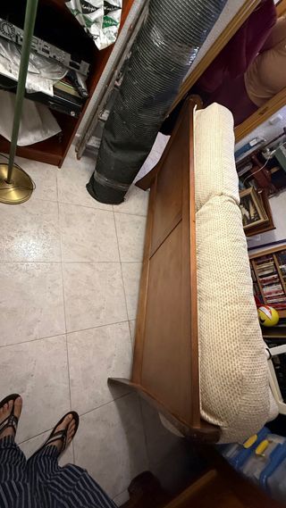 Sillón en buen estado, estructura sólida y estable. Tapizado en color claro, sin roturas. Espuma firme y cómoda. Reposabrazos de madera resistentes, no se mueve ni cruje. Ideal para salón, dormitorio o rincón de lectura. Se vende por mudanza. Recogida en mano (Madrid centro cerca metro Bilbao)