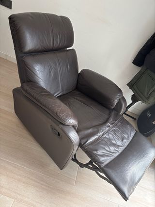 Butaca reclinable de piel en tono marrón. Muy comoda.