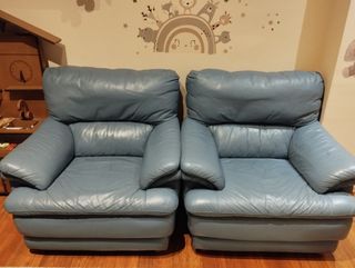 Vendo butaca de piel sintetica color azul en estado aceptable. De momento vendo solo una. Recogida en Mataró a cargo del comprador. Precio negociable.