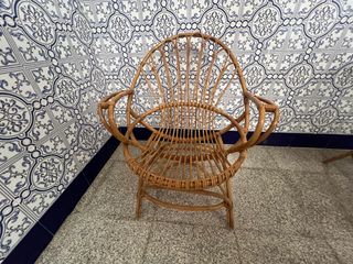 Butaca antigua madera y mimbre