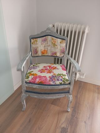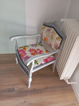 Butaca antigüa restaurada gris/ floral