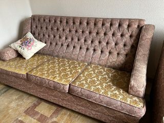 Conjunto de sofá 3 plazas y dos butacas a juego. Con uso pero muy cómodas. Ideal para retapizar. El sofá mide 2 m de ancho y las butacas 85 cm cada una. Recogida en A Lanzada, Noalla, Sanxenxo. Se pueden vender por separado: una butaca reservada