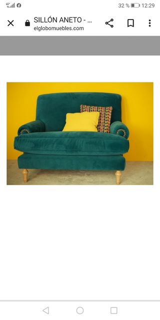 Sillón Aneto de la tienda El Globo muebles. IMPECABLE. SIN USAR. Ha estado con una funda delante este año. por mudanza no nos cabe. Tiene 1 año y no se ha usado nunca. Con las tachuelas del brazo y la tela costó 870. Puedo negociar un poco el precio pero esta impecable. Ni una rozadura. Igual que si lo compraras en la tienda. Acepto ofertas coherentes.