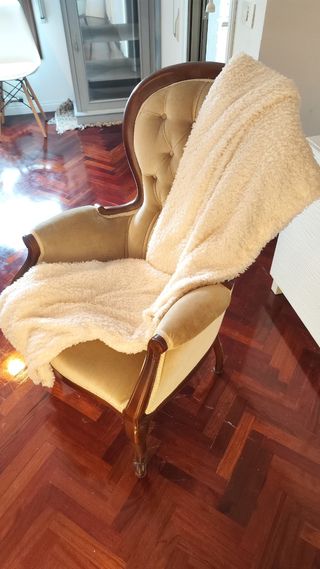 Butaca de terciopelo. Madera natural y sin polilla.