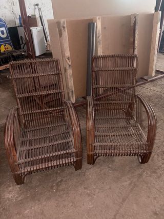 Sillón butaca de mimbre hecha de manera artesanal en general está bien salvo algunos desperfectos q tiene de algunas varillas rotas(se puede ver en las ultimas fotos de cerca) pero no afean puesto q no se ven mucho y casi no se aprecian ni afectan al sentarse porq la estructura está muy fuerte -Sus medidas son : 100 alto x 65 ancho total de brazos x 42 alto al asiento x 47 profundidad del asiento x 47 ancho del asiento x 63 alto del respaldo - Diseño de respaldo alto con entramado de rombos. - HAGO PORTES Y TE LO PUEDO LLEVAR A TU CASA POR UN PRECIO ECONÓMICO - Patas robustas con detalle trenzado.