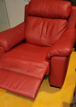 Butaca de piel en perfecto estado. Color rojo. Es reclinable manualmente con un boton lateral. Muy comoda y facil de usar.