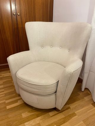 Butaca cómoda y elegante en color beige. Estuvo en un hotel, de ahí las manchas (se pueden apreciar en las fotos). - Diseño moderno y acogedor. - Tapicería de tela.