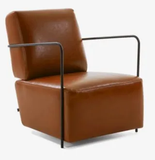 Butaca de cuero marrón con estructura metálica