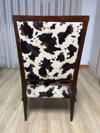 Conjunto de sillas butacas con un diseño llamativo. - Tapicería con estampado de vaca. - Patas de madera oscura. - 100€ Cada silla
