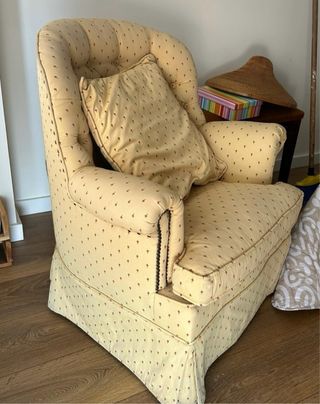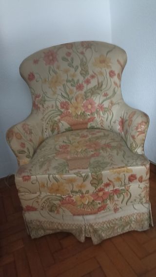 Acogedora butaca tapizada en tela. ideal para retapizar