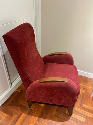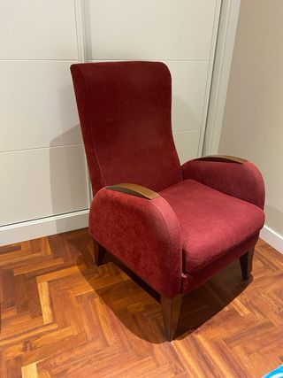 Preciosa butaca de color rojo - Tapicería en buen estado. - Patas de madera. Se hacen envios Vigo