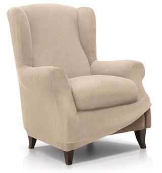Sin estrenar, solamente fueron probadas para comprobar cómo quedaban. Completamente nuevas. 2 fundas Sillón Orejero Elástica de 70 a 100cm, para butaca de 1 plaza, Modelo Reale de color Beige. Compuesta con un 95% de material reciclado, certificados GRS y OEKOTEK. Su composición es 60% Algodón Reciclado, 35% Poliéster Reciclado y 5% Elastano. El tejido es jacquard tacto algodón, hecho con hilo tintado. Funda antiácaros, hipoalergènica y antipeeling. Se puede lavar en lavadora.Ver las fotos para comprobar medidas. Fabricado en España, de la marca Faverti. Precio original individual por funda: 38,06€
