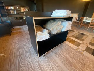 Mueble auxiliar con ruedas, ideal para almacenar mantelerías u otros textiles. - Estructura de madera. - Color negro. - Medidas 1,25 m x 62 cm x 1,17 m - Diseño moderno en color oscuro. - Ruedas para facilitar su movilidad. - Diseño moderno. Mas informacion Mv: 640 887028 Interesados consultar Visita sin compromiso previa cita Precio algo negociable Solo Recoger no se envia Mesas Sillas Butacas