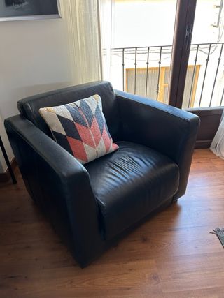 Butaca de piel con un diseño moderno y confortable. Su acabado en piel le da un toque elegante. - Tapicería de piel. - Color negro.