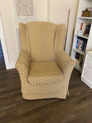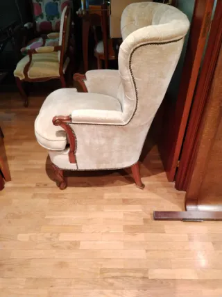 Cómoda butaca orejero con un diseño clásico y elegante. Perfecta para añadir un toque acogedor a cualquier estancia. (sin manchas) - Tapicería de tela. - Color beige neutro. - 55€ (1) -100€ (2)