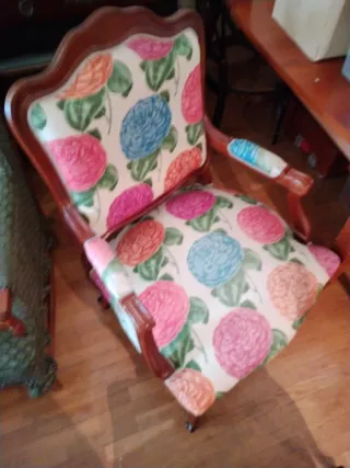 Vendo 2 butacas de madera maciza de nogal estilo. Chippendale ( ver las patas). Tapizado hace poco. Medidas: 70.altp x 70 de ancho x 55 de fondo. Uno 100€ Los 2, 175€.