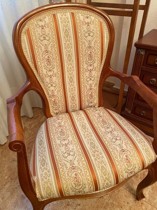 Butaca con armazón de madera, en buen estado, no es muy alta, solo tiene un pequeño roce en uno de los brazos, porque estaba debajo de un escritorio.