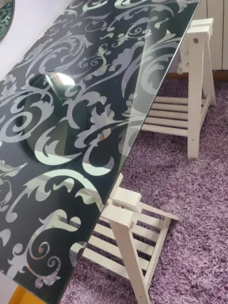 Mesa de cristal Ikea con caballetes negros