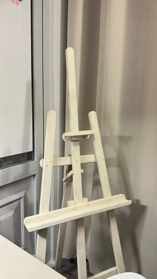 Caballete de madera MITTBACK de Ikea en color blanco. Es un soporte versátil y estable. - Estructura de madera robusta. - Diseño de caballete. - Color blanco. Tengo dos, como nuevos comprados en junio 2025. Cada uno a 20€