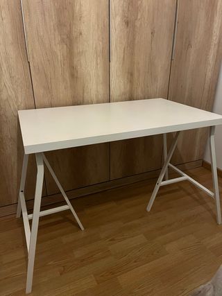 Conjunto de escritorio con tablero blanco y caballetes - Tablero de madera ikea blanco LAGKAPTEN 140x60cm - Caballetes de metal ikea azul/gris oscuro LERBERG 70cm altura Está en perfecto estado. Tiene algunas marcas el tablero (ver foto) pero son muy poco visibles. No hago envíos