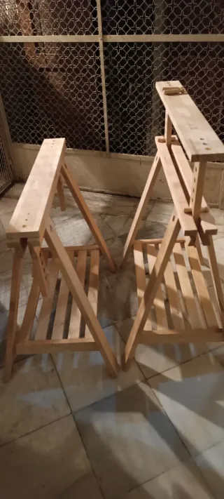 Par de caballetes de madera, perfectos para cualquier proyecto.