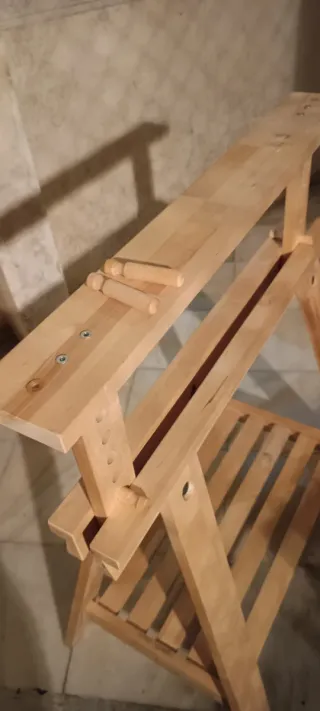Caballetes Vika Lilleby de IKEA, Son de madera. -lamentablemente los tornillos/piezas para su montaje , solo hay para un caballete (no se donde los he metido ) , pero en ikea tienen estas herramienta de montaje y suelen regalarlas. de ahi el precio de 10€ considerando que me costaron en su tienpo 25 € cada caballete -