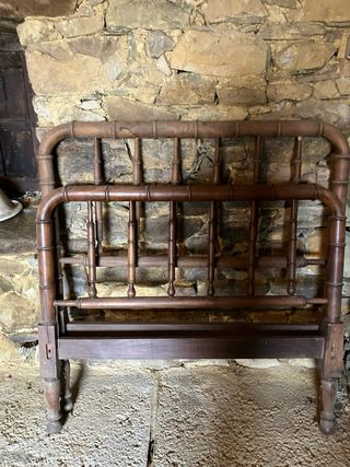 Estructura de cama antigua con un diseño clásico y elegante. - Fabricada en madera de alta calidad. - Presenta un cabecero ornamentado con detalles tallados. - Base robusta con patas decorativas. - Necesita restauración - Una cama 50€, las 2 a 80€