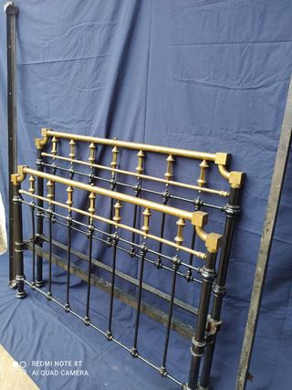 Vendo cama completa antigua de forja con su cabecero y barras laterales. Buen estado general, necesita una limpieza. Las fotos forman parte de la descripción del producto. Dispongo de otra cama similar a esta, (ver mi perfil). Hago descuento por la compra de las dos. Preferentemente venta en persona debido a su peso y volumen. Cualquier duda o aclaración no dudes en consultarme.