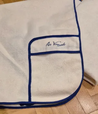 Toalla vintage de colección de la antigua aerolínea venezolana Avensa, con un diseño distintivo. De algodon rizado e impermeable en la cara inferior, en color crema y bordes en azul. Con cordon para plegar. Almohada en cabecero. Medidas:146 largo x 78cm ancho. - Logo de Avensa en la parte superior. - Diseño de tablero de ajedrez. - Pequeño bolsillo con firma. - Cordones para atar.
