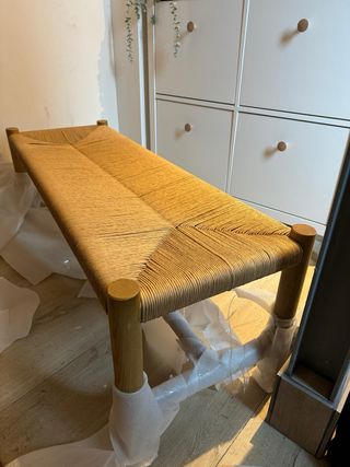 Banco para pie de cama dormitorio o para recibidor. Completamente NUEVO. Madera y mimbre 120cm llargo x 40cm ancho x 45cm altura