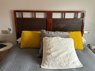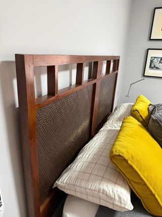 Cabecero de madera y ratán para cama de 150. Medidas 158cm x 110cm. Desgaste del uso en el ratán (imágenes 5 y 6).