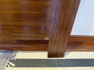 Cabecero de madera de teca. Tiene un pequeño desperfecto por haber usado ese lado para la pared. Largo 160 cm y alto 110 cm. Nuevo costó 600 euros.