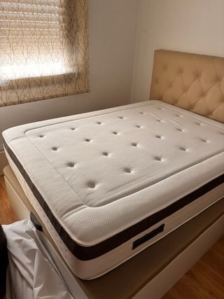 Vendo cama de 200x200 cm con cabecero capitoné en tono crema, acompañada de un colchón Sonpura con tecnología Multisac System, reconocida por su confort y adaptabilidad. Este sistema incluye cientos de muelles ensacados individualmente, lo que garantiza: ✅ Independencia de lechos: ideal para dormir en pareja sin notar los movimientos del otro. ✅ Firmeza media-alta: perfecta para mantener la espalda alineada y aliviar dolores lumbares. ✅ Alta transpirabilidad: ideal para quienes sufren de calor al dormir. ✅ Acolchado ergonómico: con viscoelástica y espumación técnica para un descanso placentero.