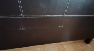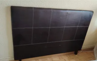 Cabecero para cama de matrimonio de 150 cm. Se encuentra en perfecto estado. - Diseño capitoné. - Acabado en polipiel de alta calidad. Podría ayudar con el transporte si la furgoneta del vecino está disponible, por 15 euros adicionales al precio.