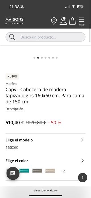 Cabecero capitone de segunda mano Málaga
