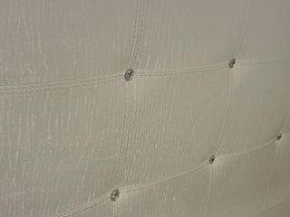 Cabecero de cama de matrimonio de 180cm. Diseño elegante con detalles de cristal. La tela es lavable - Tapizado en tela. - Color beige y blanco.