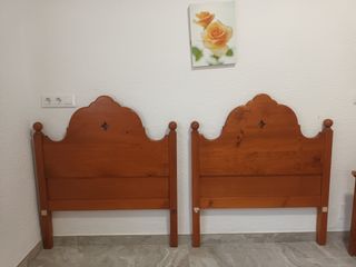 Nuevos!!! Juego de habitacion doble. 2 Cabeceros y 1 mesilla. 20€ por pieza, total 60€ Preciosa pareja de cabeceros de madera para camas de 90 cm y una mesita de noche a juego. Ideales para dormitorio juvenil o de invitados. Excelente calidad. Diseño atemporal. Se vende a este precio durante este mes por mudanza. Ver resto de mobiliario en mi perfil. Puedo hacer lotes de varios articulos con descuentos especiales!! Listo para recoger en persona en Torrevieja.!!! - Dos cabeceros cama de 90 cm. (1 metro de ancho) - Mesita de noche con tres cajones. (40x30x50) - Madera maciza de pino.
